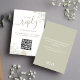 Este design apresenta um código QR para casamentos, seus convidados podem RSVP on-line com este mínimo, cartão de gabinete, um simples verde de sábio, com nosso site, resposta RSVP de orçamento