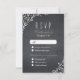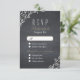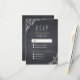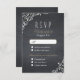 Design floral com ornamentado desenhado à mão sobre o fundo do quadro, sofisticado e elegante, perfeito para o país, casamento rústico; ou casamento vintage no inverno. Esquema de cor neutro, preto e branco com um pouco de ouro esticado. Personalize seu próprio cartão postal RSVP para seu casamento! Veja todas as peças correspondentes nesta coleção floral rústica de quadro-negro abaixo.
