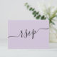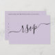 Você se encantará com este cartão RSVP de casamento de lavanda roxa minimalista, com design limpo, contemporâneo, tipografia elegante, e um espaço dedicado para um código QR para que os convidados possam acessar facilmente seu site de casamento ou responder online. Totalmente personalizável, esse elegante design é perfeito para casamentos contemporâneos, misturando estilo e função em formato monocromático de eterno