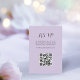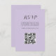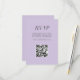 Esta simples placa RSVP de casamento apresenta texto de cinza limpo em um fundo púrpura macio, oferecendo um visual moderno e elegante. Um espaço dedicado para um código QR permite que os hóspedes acedam rapidamente ao seu site de casamento ou aos detalhes de RSVP, acrescentando um pouco de conveniência a este design minimalista. Perfeito para qualquer tema de casamento contemporâneo, esta placa RSVP combina funcionalidade com uma estética na moda, subestimada.