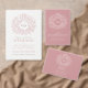 Mão cor-de-rosa e poeirenta desenhada crescendo matrizes de arte botânica RSVP. Design simples circulando suas próprias iniciais de monograma design. Em tons bonito de rosa pincelado e cinzas em branco. Convites correspondentes e outros itens correspondentes e opções de cores disponíveis. © Desenho original em folha e design por Sarah Trett para www.mylittleedenweddings.com em zazzle.