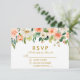 Cartão RSVP de Casamento Dourado de Coral Floral de Watercolor
