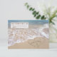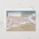 Corações de praia em areia com nomes na janela, vendo o oceano com surf de gelo para os Nomes RSVP de Casamento em Corações de areia, podem ser editados.