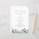 Preencha sua papelaria de casamento 'dia de' com um belo programa de cerimônias, com aquarela eucalipto e tipografia de cinzas moles. Personalize o lado inverso para listar os membros da sua festa de casamento.