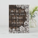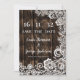 Rustic Country Lace Salve o Cartão de Data com Fundo de Madeira. Defina o tom para seu casamento rústico ou country com este belamente projetado Cartão Salvar a Data. O fundo de madeira escura combinado com delicado rendas florais brancas dá-lhe um aspecto romântico e inspirado na safra — perfeito para casamentos de celeiro, cerimônias ao ar livre ou núpcias de outono. Personalize facilmente o cartão com seus nomes e data de casamento. Ideal para casais que planejam uma casa de fazenda inspirada na natureza, ou celebração de temas bibliográficos. Fique à vontade para entrar em contato comigo para obter mais informações sobre a personalização em mypaperlove2021@gmail.com