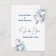 Este casamento para salvar a data é mostrado no livro branco matte com um layout moderno de um impressão de arte aquática de lindas flores azuis e brancas. Texto em uma cor de Marinho. Personalize este item, retirando o texto do exemplo e colocando suas informações nele. Imagem de ações. freepik.com