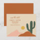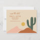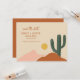 Perfeito para o casal que está planejando sua celebração de casamento boho no deserto. Este save the date de casamento simples apresenta uma cena do deserto com cacto em um design colorido impresso com os detalhes do seu casamento.