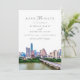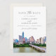 Esta salva mostra uma pintura aquosa da linha do horizonte Austin Texas e um simples creme na parte de trás com seu site de casamento. Edite facilmente a maioria dos textos e adicione sua própria foto ao fundo para um toque pessoal.