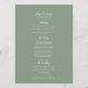 Bonito cardápio botânico de cor d'água, em branco, com bonito monograma de flores e de girassol de salsa entrelaçado e uma seleção de esboços de flores silvestres em volta de um arco verde na frente, verde sábio no verso, com sua escolha de cardápio de quatro pratos. Flores são todas pintadas manualmente de aquarelas. Convite floral delicado com texto de script em branco com tons de verde, azul, roxo, mauve, pêssego e amarelos. Personalize com suas próprias iniciais, nomes e detalhes do menu. Outros itens correspondentes estão disponíveis ou podem ser criados por solicitação. Pinturas de flor silvestre com aquarela original e design por Sarah Trett para www.mylittleedenweddings.com
