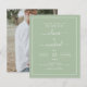 Budget Sage Green Wedding Primavera ou Summer Photo on Back Wedding Invtions - inclui uma bela e elegante tipografia de roteiro com uma cor simples e clássica moderna para a celebração especial do dia do casamento.