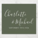 Design de casamento verde de azeitona elegante personalizado com nomes de estilo e data de casamento especial. Projetado por Thisnotme©