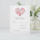 Cartões de resposta de casamento vintage elegantes com flores cor-de-rosa adoram coração.
