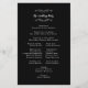 Programa de cerimônia de casamento tradicional elegante apresenta um design formal romântico. Dois floreios decorativos, cada um contendo um único coração, embelezam os nomes do casal na frente do programa e a legenda "A Festa de Casamento" no verso. Personalize todos os detalhes em letras brancas delicadas e caligrafia sobre um fundo preto sofisticado. Para obter resultados ótimos, substitua os detalhes do modelo pelos seus próprios detalhes, deixando espaço entre os parágrafos como no exemplo, e use letras maiúsculas onde especificado ou se a palavra for um substantivo próprio e normalmente escrito com letra maiúscula. Se precisar de ajuda com o espaçamento para que seus detalhes caibam perfeitamente, por favor me envie uma mensagem pelo link fornecido na listagem ou envie um e-mail para invitationsuites@gmail.com. Normalmente respondo em 24 horas ou menos. Solicitações de cores personalizadas