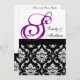Convite ao casamento tema damasco com Monograma Roxo. Design de layout por Elke Clarke ©2009. Gráficos licenciados para use.com e WhiteWhimsicalWedows.blogspot.com. Personalize com seus nomes de monograma e cores de casamento. Adicione todas as suas informações de casamento na parte traseira do cartão usando os prompts de menu fáceis de usar do Zazzle.