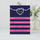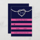 Uma corda à vela amarrada em um coração enfeita este RSVP em um fundo de marinho e fúcsia, fazer-o perfeito para o casamento náutico ou à beira-mar. Role para baixo para ver o resto da coleção de casamento e, se forem necessários itens adicionais, entre em contato conosco em prettyfancyinvites@gmail.com com sua solicitação