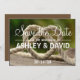 Um moderno salve o cartão de data com uma imagem de fundo de um nó amarrador para uma reviravolta rústica. Personalize o cartão com diferentes fontes, tamanho de fonte e cores para os nomes e data. No centro traseiro do cartão, você tem a opção de fornecer informações adicionais (ex. site de casamento) ou pode excluir a área e deixar o vazio. Você também pode alterar o tamanho, a forma e o papel da placa para atender às suas necessidades.
