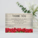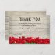 Cartões de agradecimentos de casamento, com uma parede de celeiro de meteoros rústicos, frente com tulipas vermelhas brilhantes