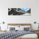 impressão de paisagem canvas com a cascata dupla Latefossen em cascata sob uma ponte num rio na Noruega em formato panorama.