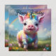 No coração de um campo vibrante com flores silvestres, um unicórnio bebê colorido franze alegremente sob o arco de um arco-íris radiante que se estende pelo céu. O corpo suave e gordinho do leitão é enfeitado em pintas e púrpuras pastéis, com manchas cintilantes de ouro e azul que captam a luz solar. Por cima de sua pequena cabeça está uma buzina espiralada, delicada e brilhando com uma luz azul iridescente, como se ela segurasse a própria essência da magia.