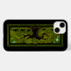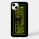 Cercada por uma borda de nós Celtas, uma floresta mística estilizada e cavaleira em tons de verde.