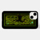 Cercada por uma borda de nós Celtas, uma floresta mística estilizada e cavaleira em tons de verde.