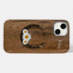 Esta maleta iPhone 14 de ferradura apresenta uma ferradura com margaridas em um fundo de aparência de madeira.