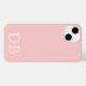 O caso do iPhone 14 é mostrado na cor de rosa-vírgula com iniciais. Personalize este caso e altere as letras para o seu ou mesmo altere as cores.