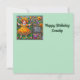 Uma menina doce, comemorando o aniversário da Cassidy. As saudações no cartão são "Feliz Aniversário Cassidy". Na parte traseira da placa está uma pequena versão da imagem frontal e muito espaço para escrever uma mensagem. Feito com o auxílio do AI Bing.