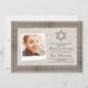Belo trabalho de arte esticado e bege rodeia a foto-quadro branca. Os detalhes da xadrez e da falsa Birchwood são perfeitos para temas de cor da cinza, azeitona, castanho, neutro ou Bar natural Mitzvah. O layout castanho do estilo do álbum é na moda com o Bar Mitzvah. Modifique facilmente as informações para sua celebração. Transfira este layout marrom do estilo do álbum de recortes para outro papel de carta de papel Mitzvah Bar.
