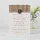 Um clássico design de som em tons marrom e bronzeado cria um padrão divertido e atualizado com um sotaque final de um rosa de ouro metálico misturado para criar um design que realmente irá pop. Um círculo castanho e castanho contém um monograma e cria um quadro para a parte inferior da placa onde você pode encontrar um texto de exemplo que você pode personalizar para criar um convite personalizado para seu evento.