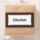 Uma simples etiqueta de comida. A cor do quadro que agora é marrom chocolate pode ser mudada para qualquer outra cor que você quiser. Clique no botão "personalizar" e altere a cor do plano de fundo. O estilo, o tamanho e a cor da fonte também podem ser personalizados. O rótulo pode ser usado para qualquer coisa e é bastante universal. O exemplo mostra uma etiqueta de comida de chocolate, mas pode ser usada para muito mais. Rotule sua comida caseira, vinho ou suco, capas de DVD/CD ou simplesmente use-a como uma etiqueta de endereço. As possibilidades são infinitas.