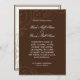 Esta trabalho de arte de colheita foi design para uma coleção de casamento moderna e contemporânea. Existe um conjunto completo de produtos e pode ser criado em várias cores. Se quiser que seja igual ao seu casamento, avise-nos por e-mail e ficaremos felizes em ajudá-lo. Este design é constituído por uma cobertura dupla marrom-chocolate com borda dupla, com espirros bronzeados e macios, feitos de ornamentos gravados em vintage. Há um fundo de cor creme macio, tocado com uma Orquídea de Cattleya pintada elegantemente. No verso está o mesmo design sem a Orquídea e o texto do casamento. RECOMENDAÇÕES DE SELEÇÃO DE PAPEL: Além do papel padrão oferecido, este seria requisitado com os Papéis de Champanhe ou Metálico de Gelo, Silver ou Metálico Dourado ou qualquer dos papéis premium. VOCÊ TAMBÉM PODERIA GOSTAR DE: