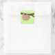 Esta design de uma preguiça sorridente e marrom com nariz cardíaco pendurado numa árvore faz você sonhar com um ritmo mais lento, aproveitando o momento e os locais tropicais. O desenho da linha marrom é colocado sobre um fundo verde claro, mas essa cor ou qualquer texto pode ser facilmente personalizado. O design neste adesivo funciona bem para adultos, mas é amigável para as crianças também e seria perfeito para um menino ou para uma menina.