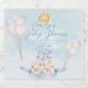 Celebre seu chá de fraldas em estilo real com nosso estilo encantador'! Ajustado de um caso temático por príncipe, este convite ostenta balões pastéis, elegantes scripts de caligrafia em azul e ouro, detalhes espumantes e um castelo de aquarela enfeitado com uma coroa ouro. É a maneira perfeita de dar o tom para um ajustado de celebração real para o seu pequeno príncipe!