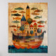 Castelo flutuante em um navio - Poster de pintura a óleo de arte popular Traga um toque de capricho e maravilha para o seu espaço com este poster de pintura a óleo de arte popular encantadora apresentando um castelo flutuante sobre um navio majestoso, cercado por peixes nadadores. Este trabalho de arte surreal e sonhador combina a fantasia marítima com o charme de arte popular, fazer-o como uma peça de declaração perfeita para qualquer sala.