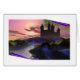 Um castelo antigo está por um lago, pela névoa e pela névoa incandescendo e fornecendo um sentimento mystical.