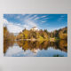 Castelo refletido em impressão ou poster. Fotografia do castelo medieval de Trakoshchan na floresta de ouros leves sob o céu azul. Trakoshchan é um dos castelos mais bonitos da Croácia.