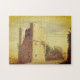 Esta design de quebra-cabeça apresenta uma representação de um castelo como um edifício.