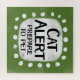 Um design de animais tipográficos irreverente e fofo que diz "Cat Alert, Prepare to Pet". Ele apresenta texto preto e vermelho em um retângulo branco com pontos brancos engraçados e brincalhões ao redor dele, tudo em um fundo de cinza.