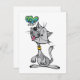 Uma design linda de um gato sentado olhando para cima de uma borboleta que está voando bem acima do nariz. O gato é cinza e tem a língua rosa para fora e parece muito feliz com o mundo. A borboleta é adorável e voa logo acima do gato. Este gato e uma design de borboleta parecem excelentes nesses convites