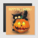 Cat Fun Halloween Character biting a Pumpkin