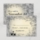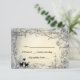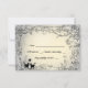 Este rsvp apresenta um design de felinos brancos em meio a videiras e ao trabalho de rolagem. Cinzas pálidas, com luzes douradas.