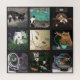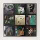 Um conjunto de pinturas de gatos arranjadas num padrão de colcha. Nove imagens de diversão felina. Imagens coloridas de gatos e outros animais, aquíferos, vinho, koi e muito mais.