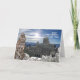 Um belo céu brilhante com uma Catedral no centro. Uma árvore de Natal maravilhosamente enfeitada e grande estilo vintage adiciona elegância. Diz "Feliz Natal".