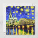 Esta bela design mostra Colônia na Alemanha e é uma catedral famosa num estilo de pintura de Van Gogh na Noite Estrelada.