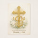 Celebrate the Sacrament of Holy Matrimony with this elegant Catholic wedding prayer card. Featuring a radiant gold cross entwined with wedding bands and ornate scrollwork accented with white roses. The front reads “United in the Heart of Jesus” above the names of the bride and groom. Inside, a reverent nuptial blessing invokes God’s grace and the intercession of the Blessed Virgin Mary. A beautiful keepsake for the wedding day, perfect for Catholic guests, prayer favors, or a bridal devotional.