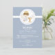 Celebre o batismo do seu filho com este convite que inclui um anjo de menino giro contra um fundo azul claro. É perfeito para as cerimônias cristãs católicas e religiosas. Disponível em espanhol. Celebra el Bautizo de tu hijo con invitación que apresenta a un lindo ángel niño sobre un fondo azul claro. Es perfecta para ceremonias de Bautizo católicas y religiosas.