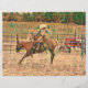 Papel scrapbook de cavalgada de cowboy de rodeio country rústico ocidental. Este papel de 110 lb pode ser usado para seu álbum de fotos, artesanato ou projetos de decoupagem que exigem papel mais pesado. Design de arte em estilo vintage antigo. Trator vermelho ao fundo. Direitos autorais da imagem Marg Seregelyi Photography.