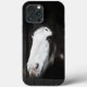 Cavalo castanho e branco na fazenda perto de Porlock em Exmoor. O cavalo estava olhando para mim com aqueles lindos olhos azuis.