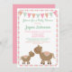 Um convite de chá de fraldas para meninas bonitas. Em pêssego, rosa e menta com uma mamãe e cavalo bebê no fundo.